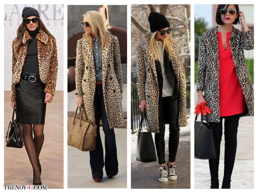 Особое внимание в этом сезоне уделяется комбинации с леопардовыми принтами. В этом случае белый цвет шубы смягчает образ, тем самым надёжно защищая от вульгарного привкуса, который часто сопровождают анималистичные принты