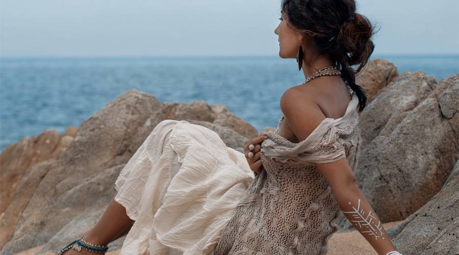 Еще один подходящий для лета стиль – богемный. Он зародился еще в средневековье и стал любимым у творческих и креативных людей. Модное пляжное платье в стиле бохо подойдет для ярких девушек, любящих заявлять о себе с помощью одежды. Сочетать несочетаемое – вот главный девиз этого направления. Но у бохо есть и свои уникальные черты: этнические принты, орнаменты, бахрома, свободный крой. Однотонное, сдержанное платье вместе с яркими аксессуарами хорошо подойдет для вечеринки на пляже. А к изначально украшенной вещи не нужно добавлять какие-либо детали.