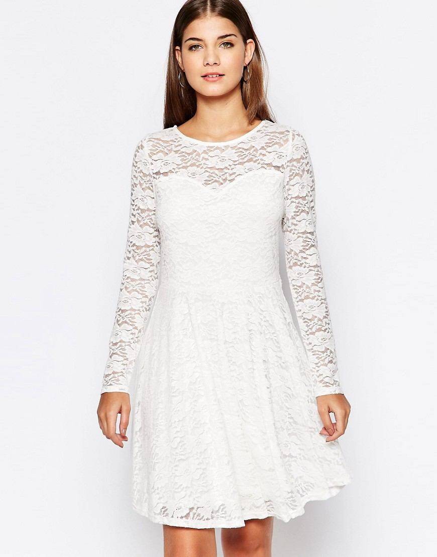 Белые платья с длинным рукавом — отличный вариант для культурного отдыха. В них можно пойти в театр или в ресторан, прогуляться по парку или набережной, а также отправиться в офис. Наиболее вычурными остаются фасоны, в которых рукава полностью выполнены из кружева — они придают рукам особу утонченность и изящность