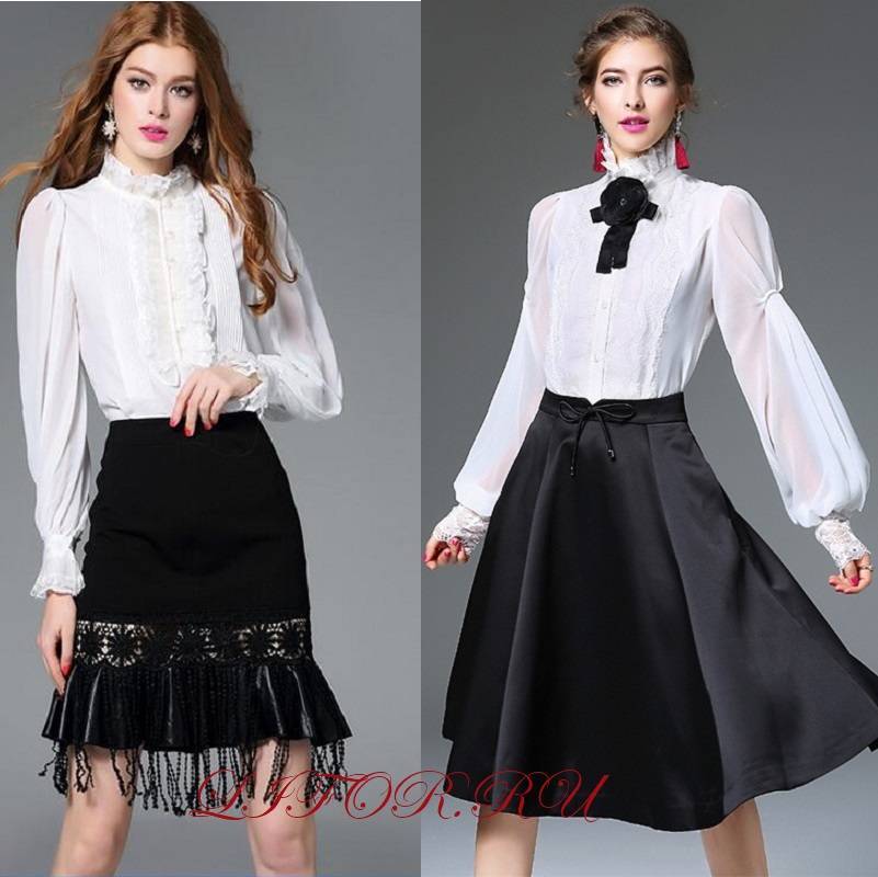 Белые блузки, которым в этом сезоне было уделено особое внимание, имеют самые простые фасоны и минимум декора. Вечерние полупрозрачные луки дизайнеры отделали ажурной вышивкой шелком