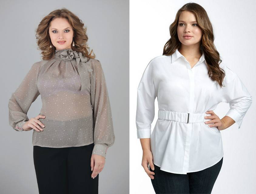 Для полных женщин стилисты предлагают новинки приталенных шелковых блузок, так как именно они корректируют фигуру и делают ее визуально стройнее. Тонкий пояс в таком случае сделает четкий акцент на талии, приближая силуэт к идеалу и вытягивая его.