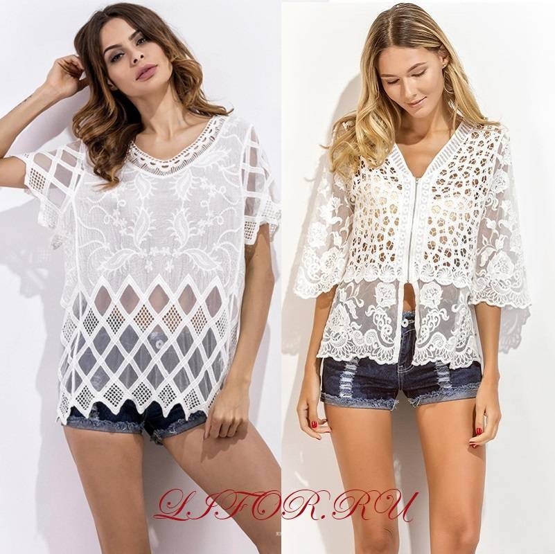 Входят в моду укороченные кружевные изделия свободного кроя с фигурным нижним краем. Очень часто кружевную блузу с длинными рукавами дополняют нижней майкой в тон, а рукава остаются прозрачными, что делает наряд соблазнительным.