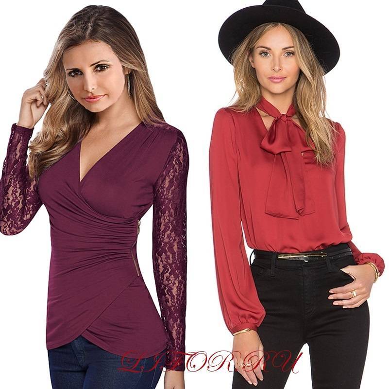Однотонные кофточки мужского кроя очень удобно носить в офисе. Блузки с запахом и модели, исполненные в этническом стиле, подойдут для каждодневной носки. Если собираетесь на торжество, то однотонная блузка с бантом или декорированная рюшами, поможет создать праздничный образ. Дополнить его помогут расклешенные брюки или элегантная юбка-карандаш, а в завершение — туфли или босоножки на высоком каблуке.