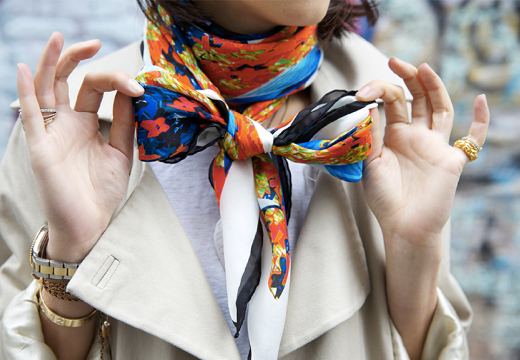 Это идеальный способ продемонстрировать, как красиво повязать платок на шею, особенно если он тонкий, шелковистый и с великолепным рисунком.