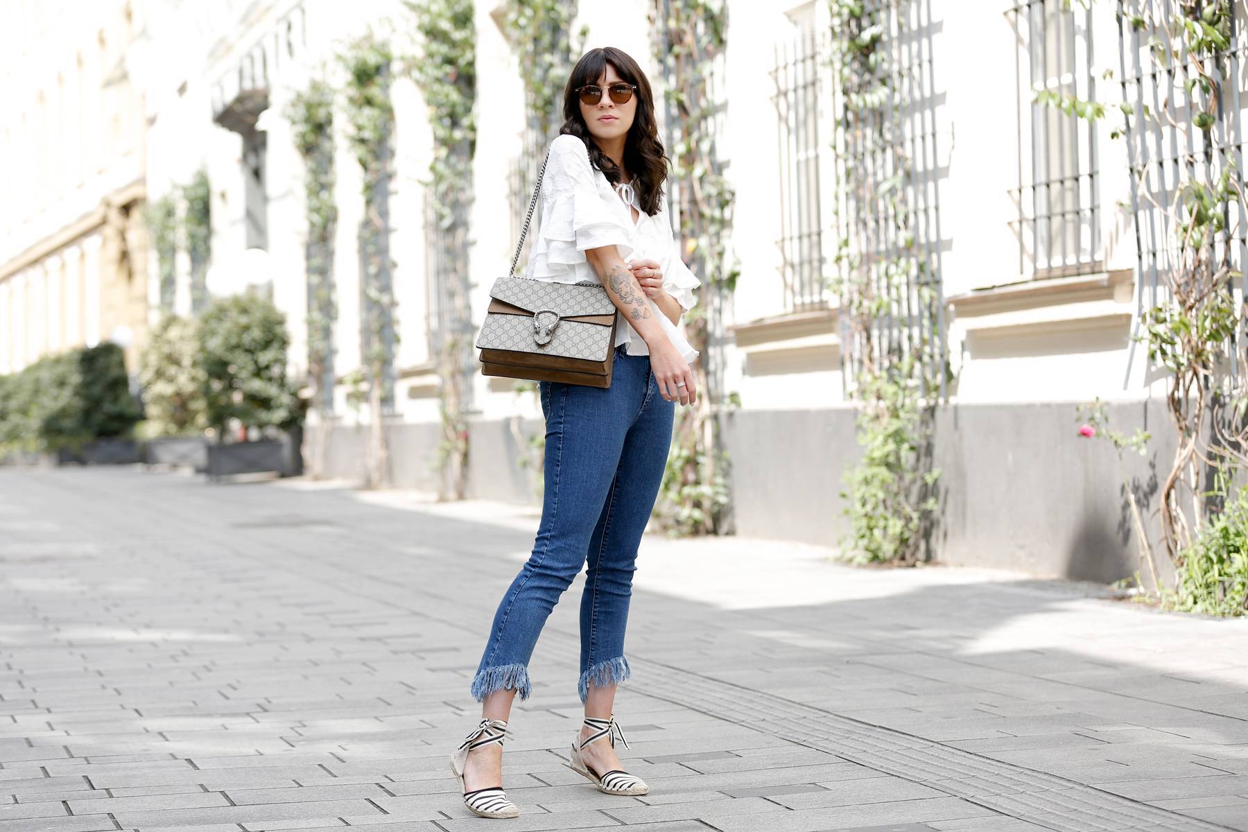 А вот белые босоножки с закрытым мыском, хотя и прекрасно сочетаются с одеждой любых цветовых оттенков, все же менее универсальны. К примеру, в офисных образах белые босоножки бывают неуместными.