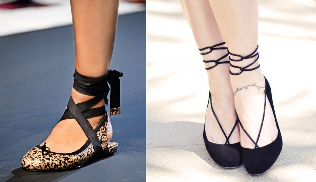 Это очередная стильная новинки. Босоножки, свои видом имитирующие пуанты, поражают нежностью и изяществом. С ним легко сформировать грациозный воздушный образ, отлично гармонирующий летящими платьями миди. Обязательный атрибут такой обуви – атласные ленты для завязок.