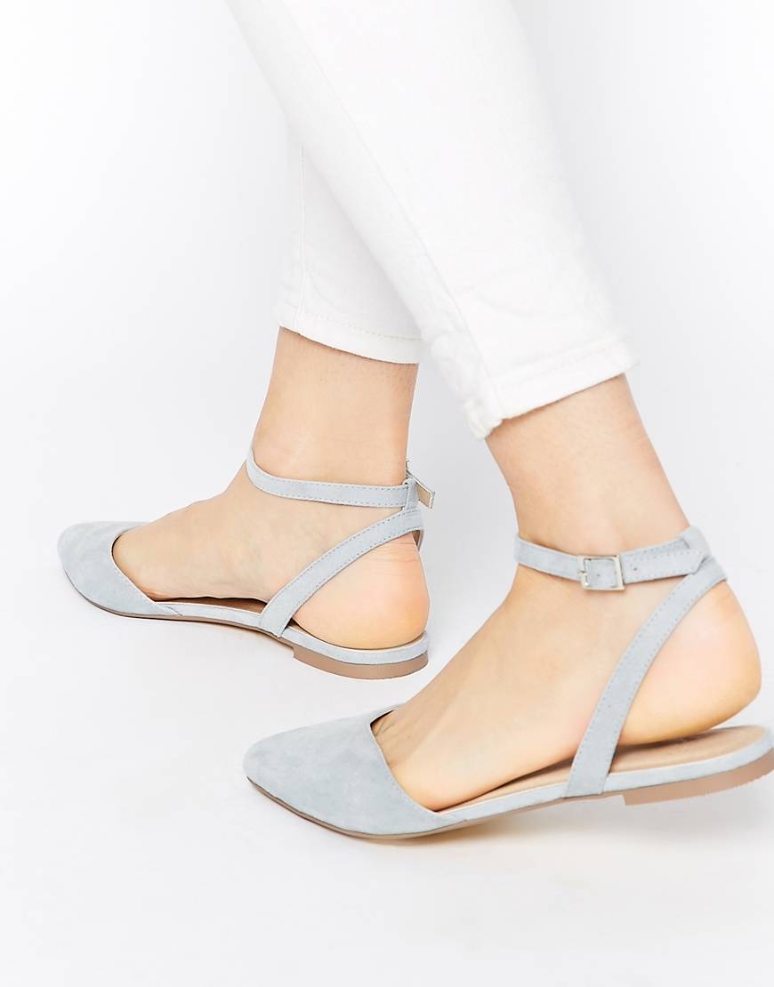 - На тонкой лодыжке изящно смотрятся модели, у которых ремешок проходит вокруг ноги или через подъем.