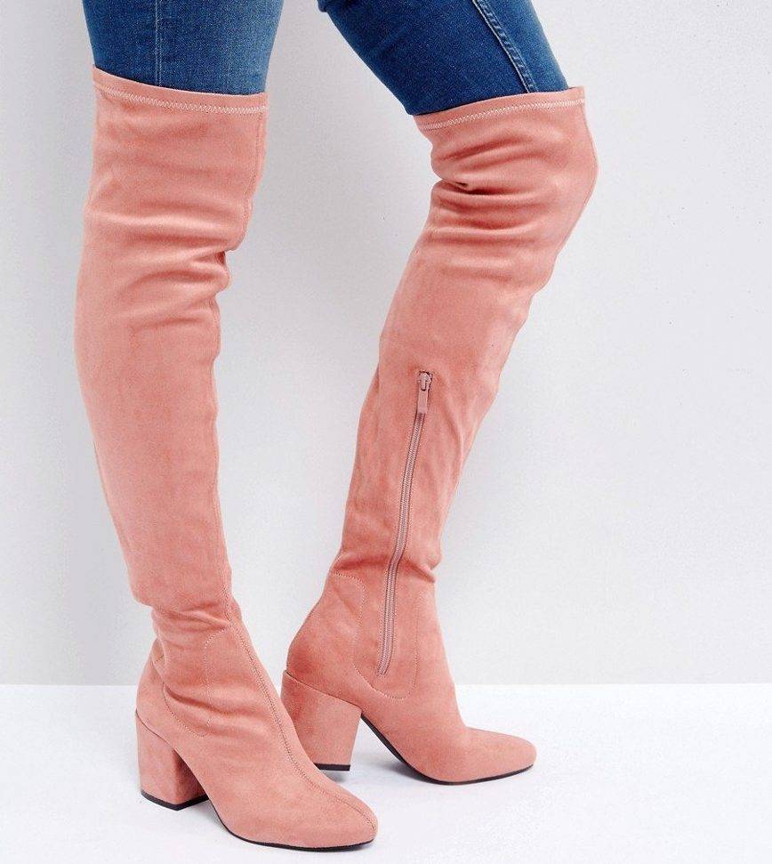 - ботфорты пудрового розового цвета на низком ходу. Этот оттенок сейчас очень модный, с помощью него можно создать нежный и романтичный образ. Выбирайте подходящие по стилистике аксессуары и наслаждайтесь своей элегантной зимой.