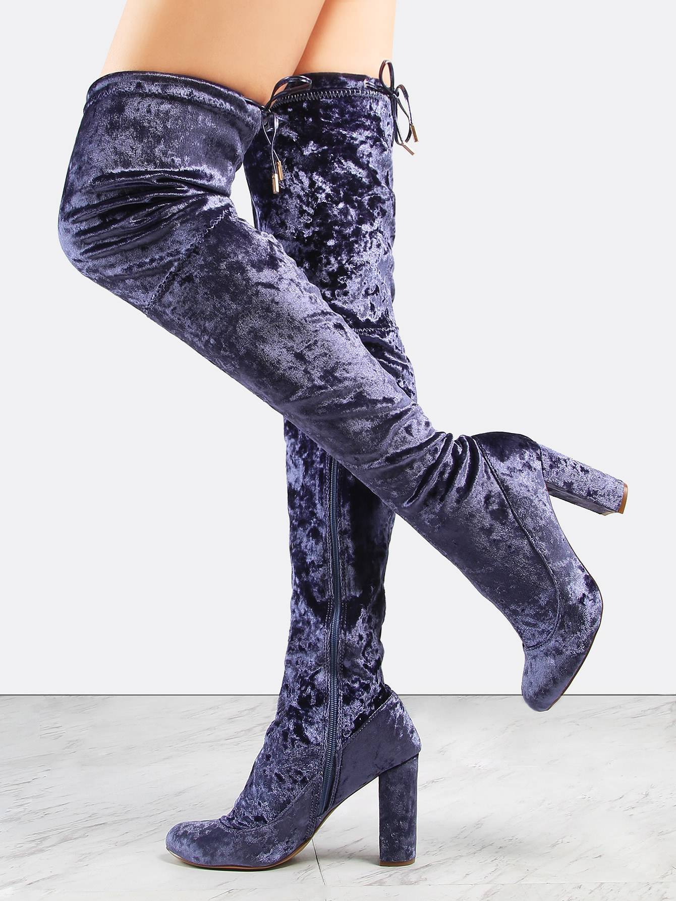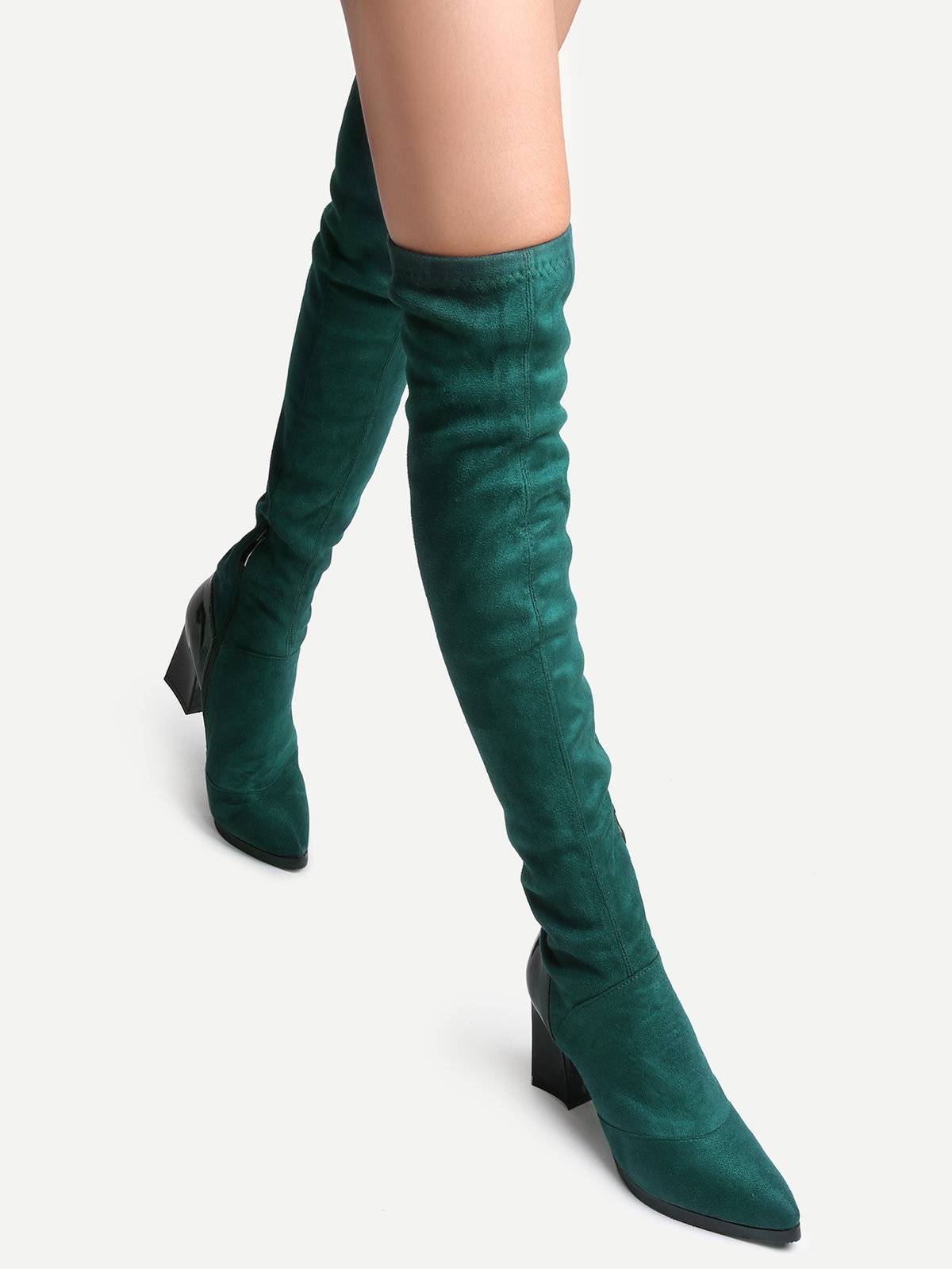 Дизайнеры предлагают стрейчевые (замша, бархат, велюр) сапоги до середины бедра. Такой вариант подходит для сухой весны и осени. В дождливую погоду внешний вид ботфорт быстро испортится. Не рекомендуется выбирать обувь из кожзаменителя, в которой нога будет сильно преть и натираться в любое время года. Также не стоит покупать лаковые модели, которые сложно сочетать с повседневной одеждой (а с короткой юбкой образ вообще выглядит вульгарно).
