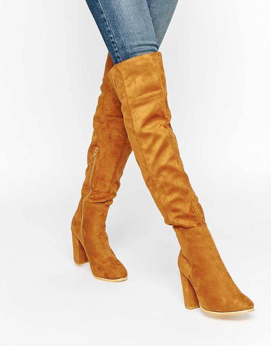 Стильное сочетание светлых рыжих ботфортов и розоватого пальто-кокона дополнят аксессуары более ярких оттенков – оранжевого, лазурного. Темно-рыжие сапоги до колена будут хороши в комбинации кожаной куртки и темно-коричневых брюк-skinny или черных джинсов.