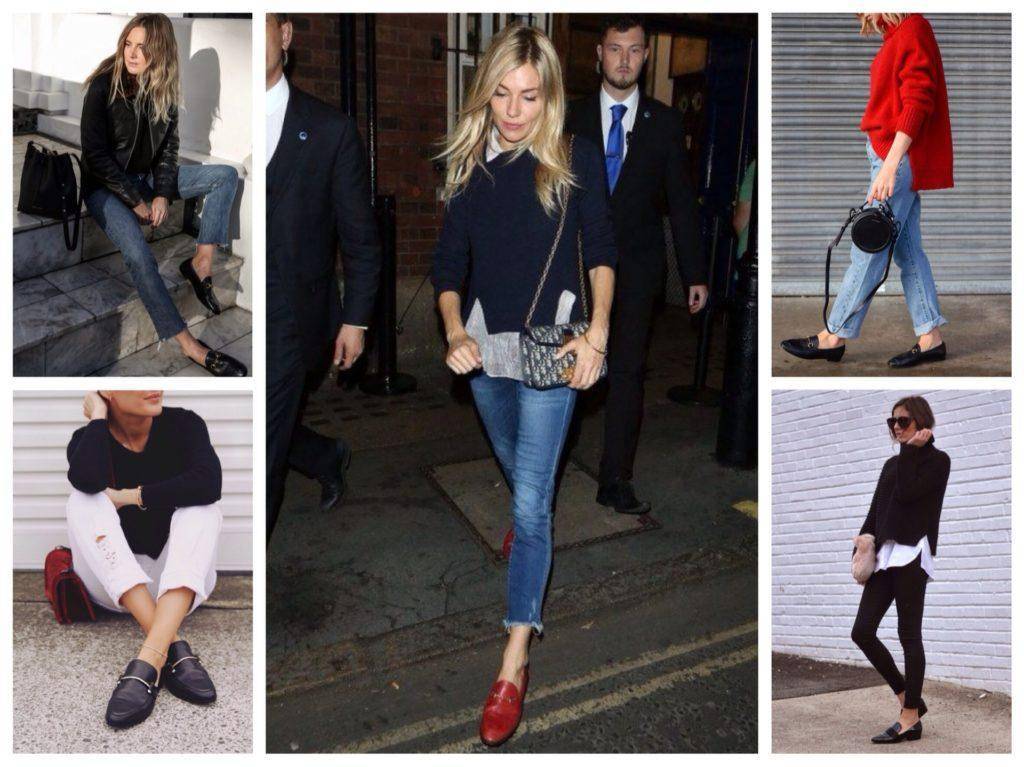 • Белые/голубые узкие, укороченные джинсы + коричневый бомбер + челси каштанового/кирпичного цвета. • Свитер однотонный или в черно-белую полоску + пестрый шарф + черная косуха + синие/голубые джинсы + черные челси. • Джинсовая куртка до талии + узкие темные брючки + челси на каблуке или танкетке. • Шифоновое платье-миди однотонное или цветное + черные челси на подошве vibram. • Светлая футболка/худи + джинсовые шорты + черные гольфы выше колен + челси.