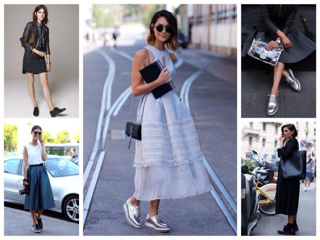 Чопорная классика – черные кожаные модели. Смелые предложения стилистов – оксфорды приглушенного рыжего оттенка, пошитые из замши, нубука, кожи. Каблук также претерпел изменения. В тренде – модели на танкетке, тракторной подошве.