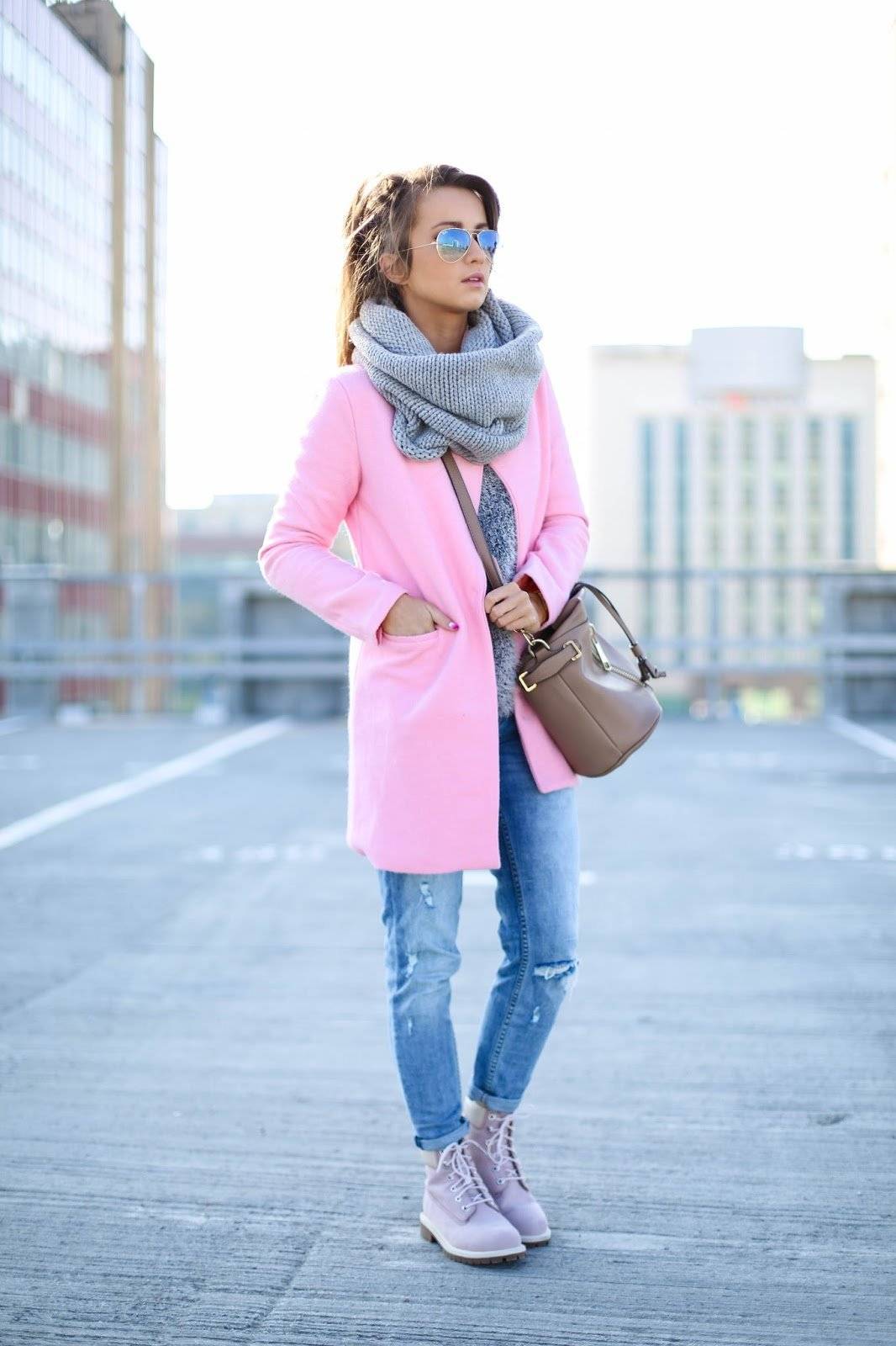 - Короткие теплые пальто компонуются с женскими берцами или тимберлендами.