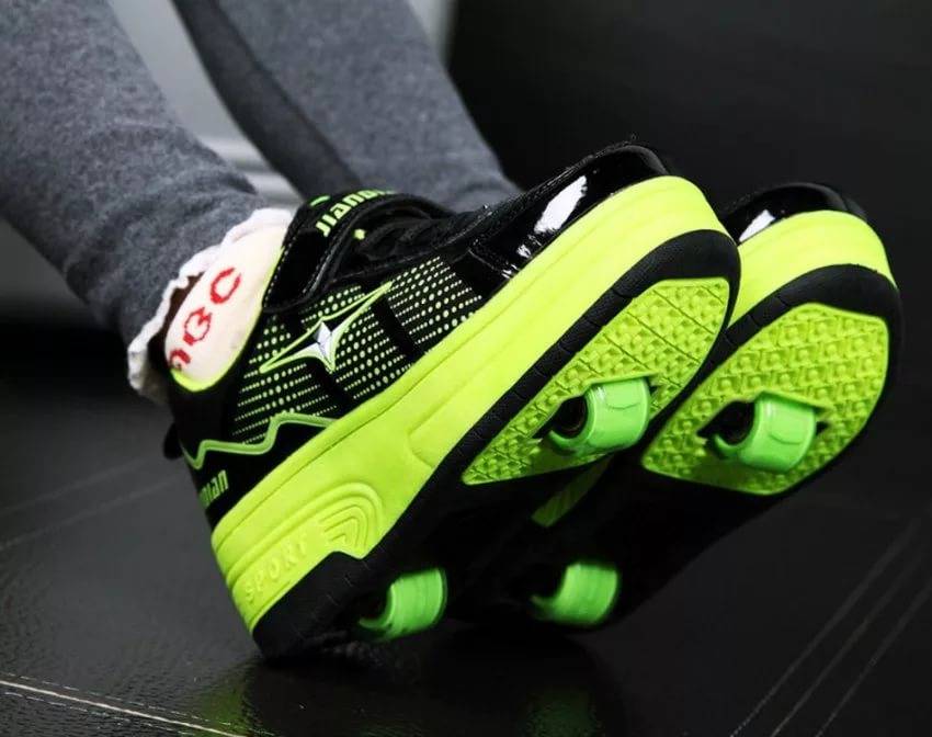 Ботинки на колесах имеют и другое название — роликовые кроссовки. И выглядят как гибрид роликов и кроссовок.