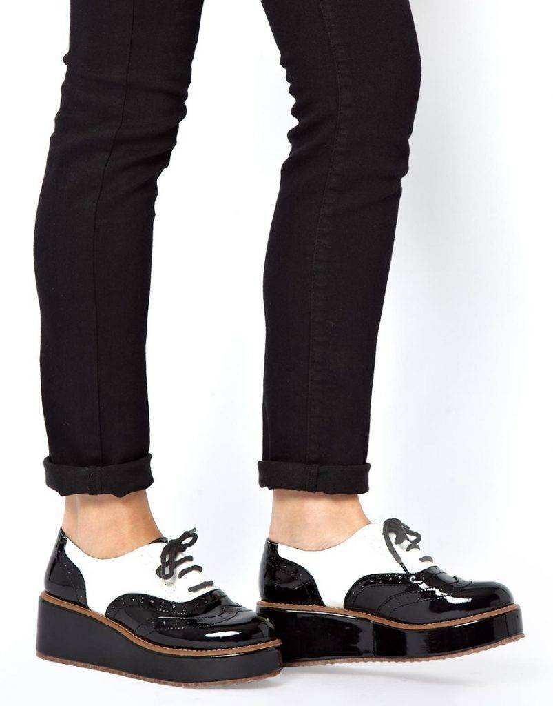 - Тем дамам, у которых длина ноги далека от совершенства, рекомендуется выбирать к оксфордам брюки или колготки в тон. Такое сочетание поможет не только визуально удлинить ноги, но и сделать фигуру более стройной.Теперь можно перейти еще к одному важнейшему вопросу, который заключается в том с какими вещами можно носить такую строгую обувь.