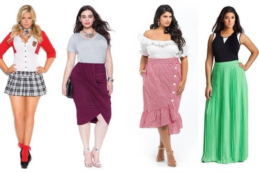 Юбки больших размеров нужно выбирать, основываясь на особенностях фигуры женщины. Имеющиеся недостатки требуется успешно спрятать и в противовес им продемонстрировать окружающим свои достоинства. В зависимости от этого подбирается соответствующий фасон и принт. Например, модели в полоску для полных хорошо вытягивают силуэт, а завышенная талия отлично прячет животик. Давайте рассмотрим, какие же модели лучше выбрать разным типам фигуры.