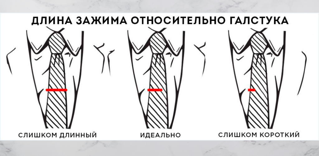 Чтобы выбрать подходящий вариант, требуется учитывать важное правила: по длине застежка должна быть меньше, чем ширина галстука. Выступающий металлический край считается дурным тоном