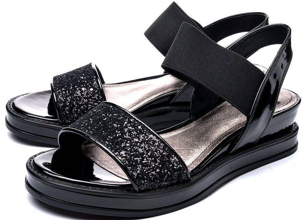 Платформа также не теряет актуальности. Черные сандалии в этом случае могут иметь разную высоту подошвы – от 2 до 10 см. Разновидностью подобной обуви стала танкетка, увеличивающая высоту платформы в области каблука. Она может быть скрытой или открытой, подходит к стилям кэжуал, бохо, одежде для повседневного использования. Используется для молодежных образов, поэтому женщинам старшего возраста нужно внимательно относиться к выбору такой обуви.