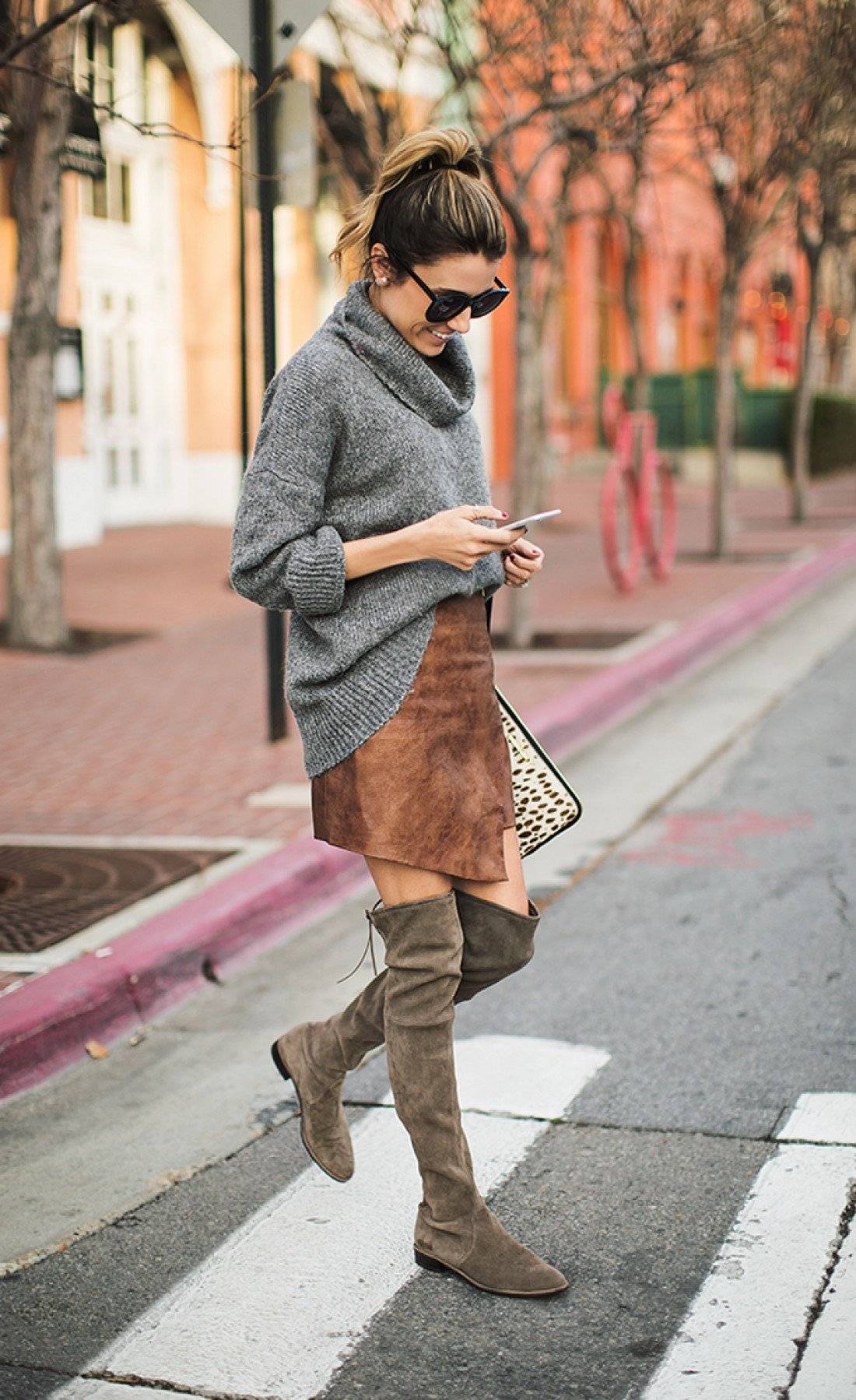 С чем носить замшевые ботфорты, актуальные комбинации:
