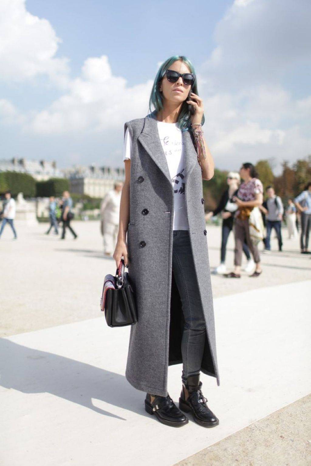 С какими аксессуарами носить удлиненный жилет без рукавов