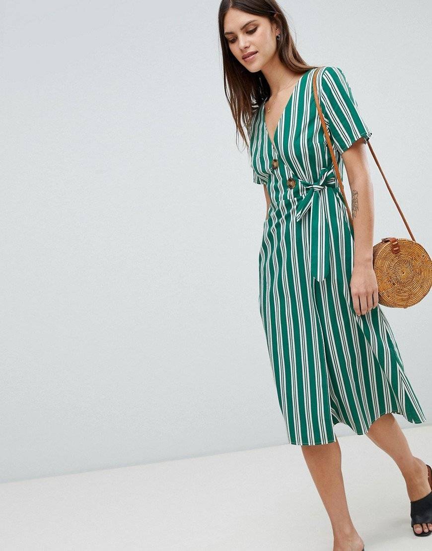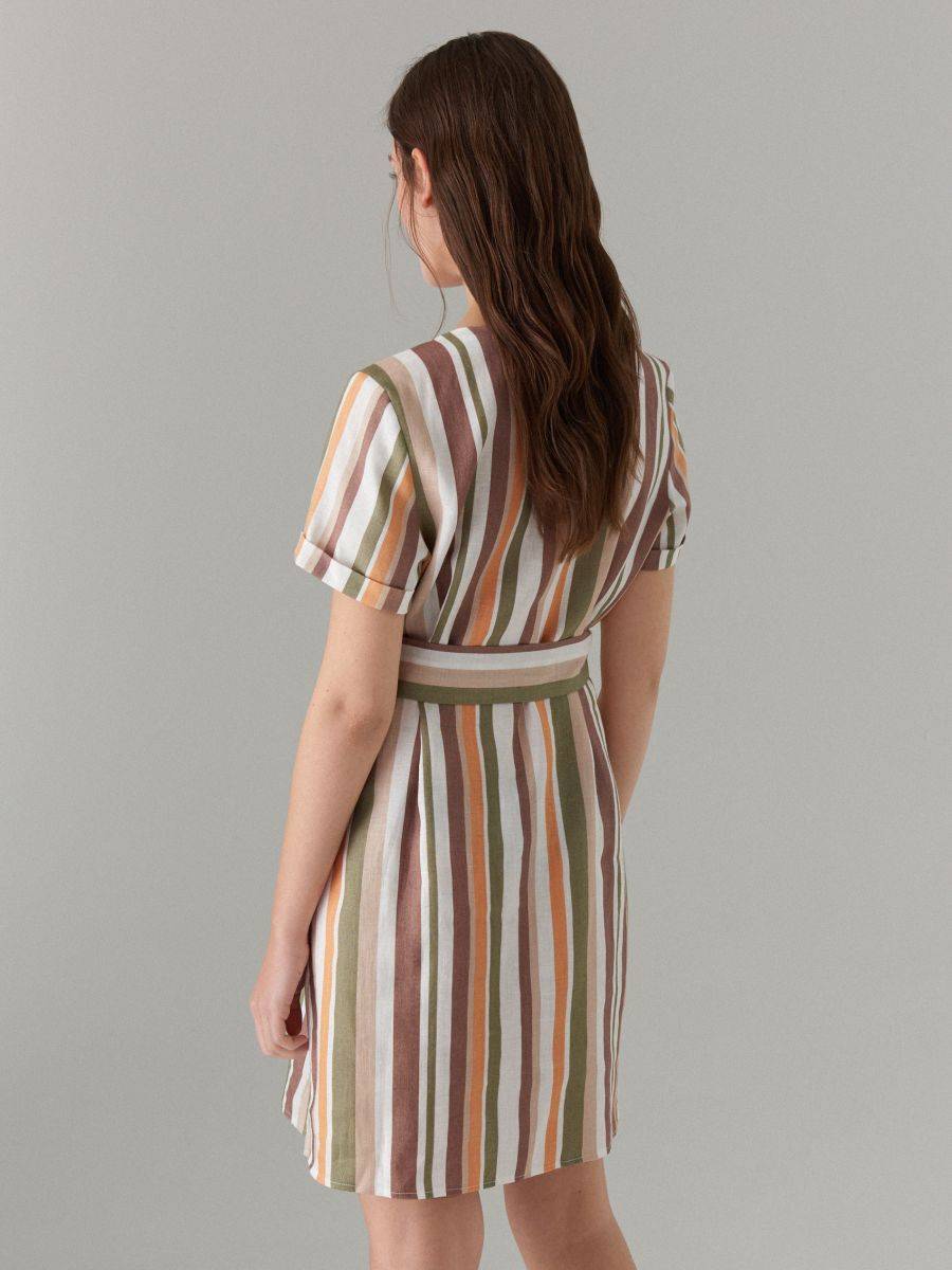 На радость адептов здорового образа жизни и всего натурального, а также просто любителей этого материала в последние годы в продаже появились платья изо льна разных цветов. Один из самых модных узоров на этой ткани – полоска.