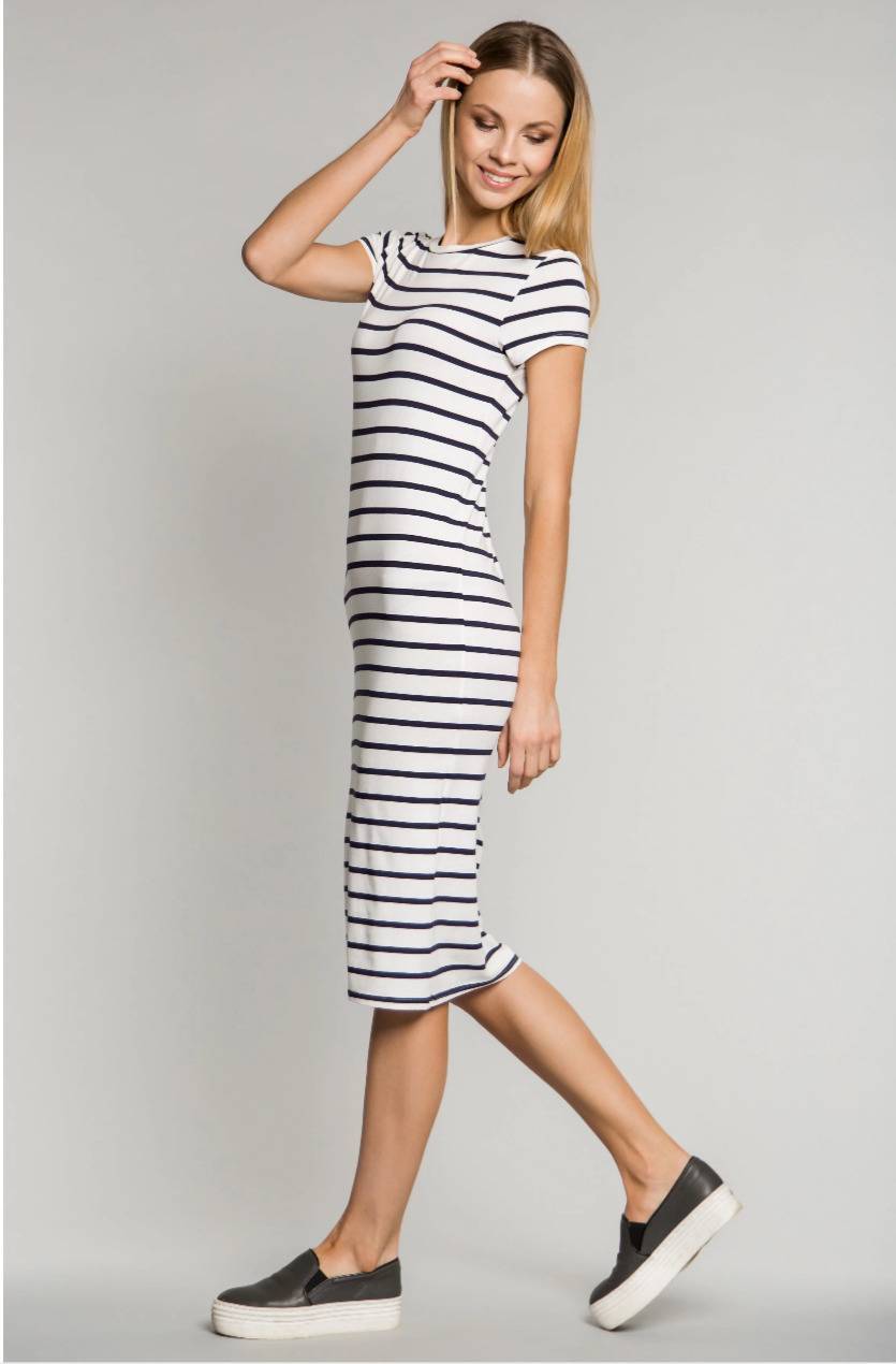 В зависимости от фактуры ткани, ее толщины и расцветки, платья в полоску могут быть летними, демисезонными и даже зимними. Модели, предназначенные для холодного времени года, могут быть выполнены из шерсти и иметь длинные рукава, или быть похожими на сарафан. В этом случае стильным дополнением к наряду будет однотонная водолазка.