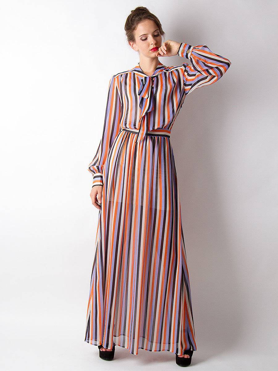 Носить летящие и легкие платья из шифона летом – сплошное удовольствие. Модели в полоску из этого материала чаще всего встречаются длиной до пола или до колена.