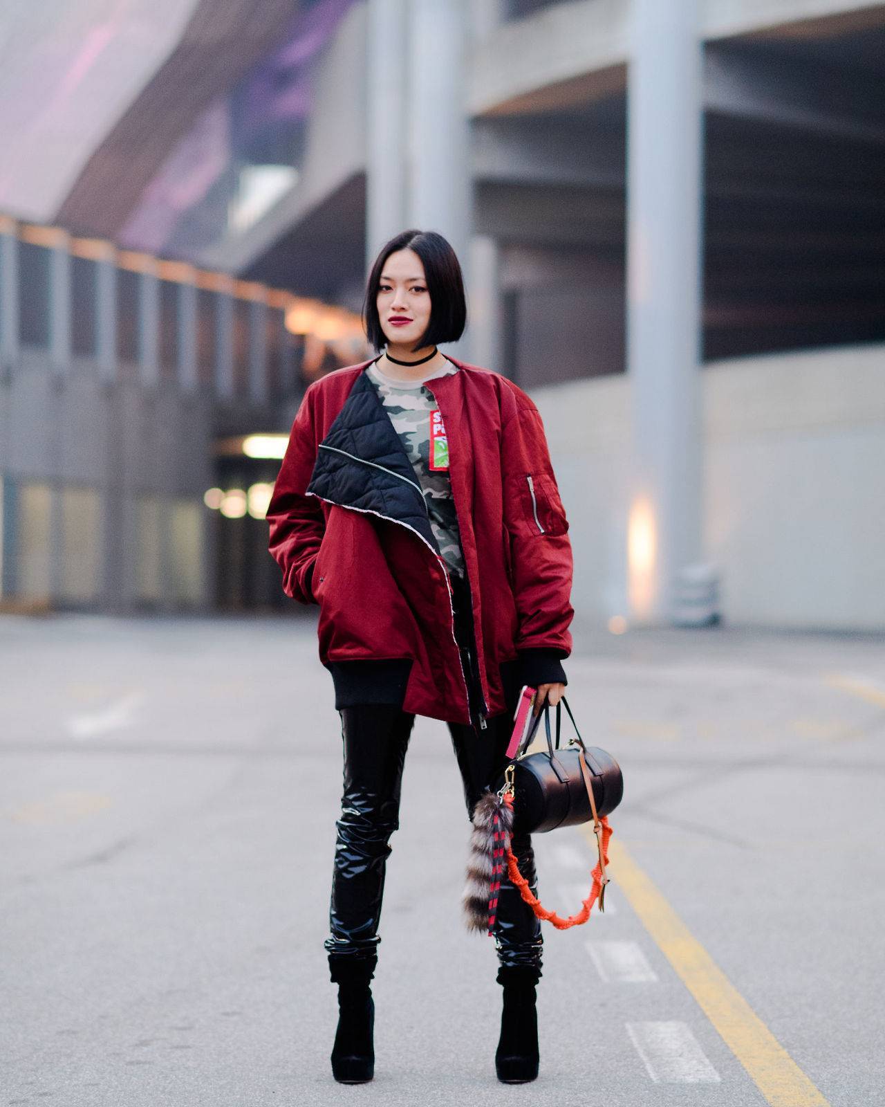 При выборе аксессуаров в дополнение к бомберу лучше придерживаться чувства меры и предоставить ему право быть главным акцентом в образе. Например, можно ограничиться спортивным рюкзаком, лаконичным плоским клатчем, шоппером или мягкой торбой.