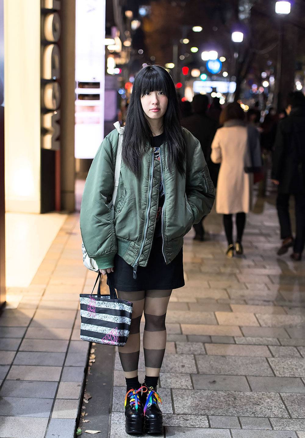 Если хотите выбрать что-то по-настоящему интересное и запоминающееся, обратите внимание именно на разноцветную курткуСтильный образ с цветным бомбером, пышной юбкой и кроп-топомДля придания такому образу экстравагантности используются другие виды декораций – вышивка, оригинальные вставки, шипы