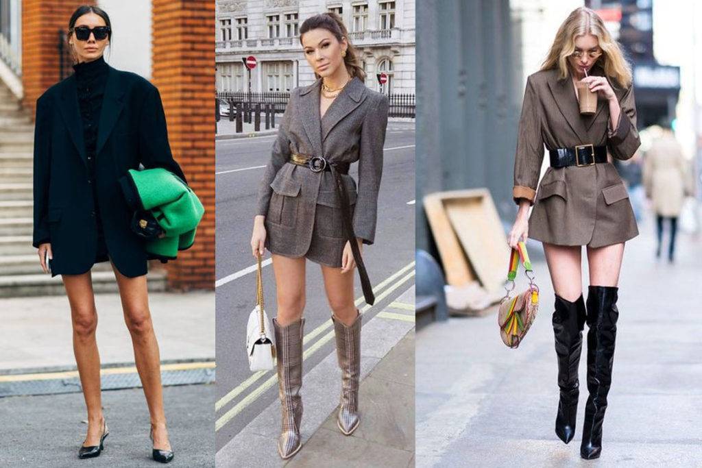 Удлинённый пиджак поверх мини, чтобы казалось, будто вы только в нём. Конечно, вариант только для стройных девушек, но смотрится эффектно.