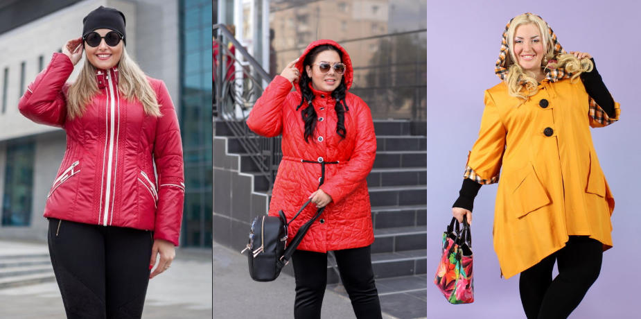 На фото модные куртки для полных девушек и женщин 2021