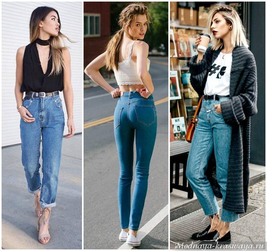 В моде стиль 90-х. А это значит, что в моде джинсы с высокой талией. Носят такие джинсы с заправленными внутрь рубашками, блузками и свитерами.