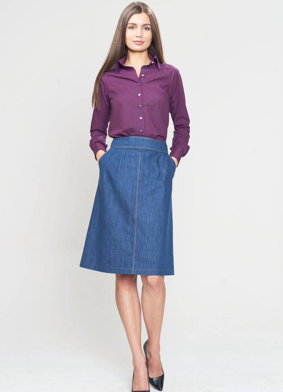 Дизайнеры советуют остановить свой выбор на джинсовых юбках трапециях с высокой посадкой и средней длины. Такой фасон подойдет практически любому типу женской фигуры и позволит скрыть все недостатки, подчеркивая при этом достоинства.