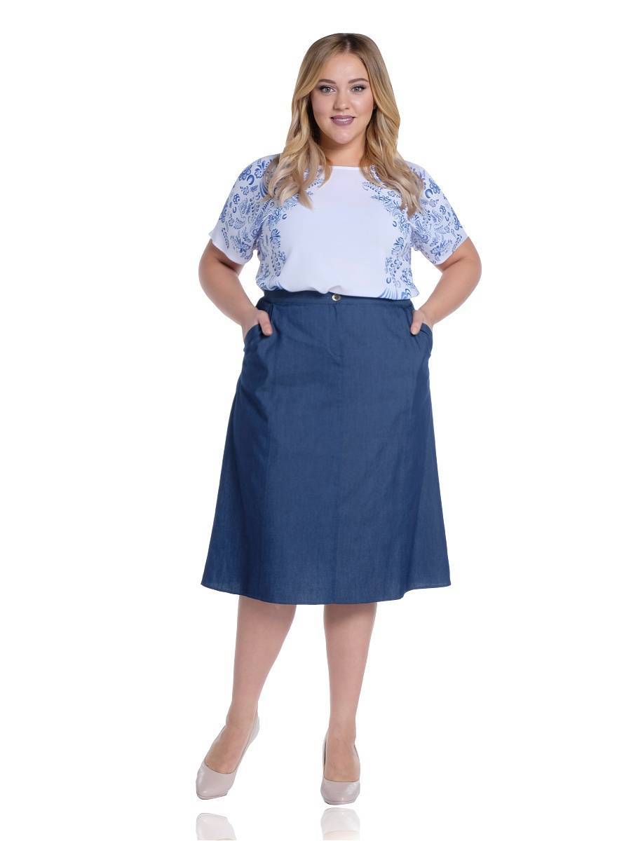 Рисунков на одежде избегать не стоит даже в 50+. Но принт должен быть стильным, неконтрастным, без кошечек-собачек. Например, цветы или абстракция на однотонном дениме. Что еще нужно для лета? Юбка А-силуэта с принтом — идеальный вариант!