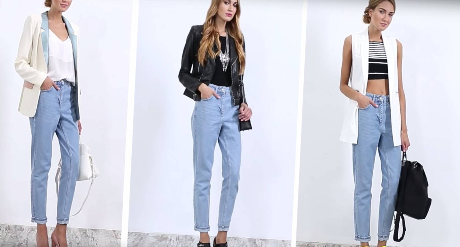 Мы подобрали для вас три красивых образа с джинсами-американками нежно-голубого цвета.
