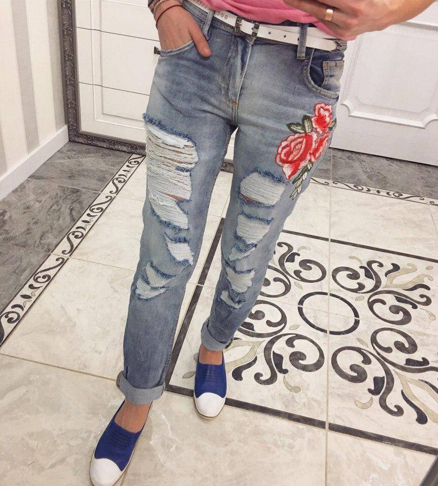 Стройные девушки могут при выборе рваных элементов руководствоваться только здравым смыслом. Особенно присмотритесь к бойфрендам, их укороченная конструкция хорошо скроет лишний рост и подчеркнет женственность. Лучше отдать предпочтение моделям с отверстиями в районе коленок и бедер.