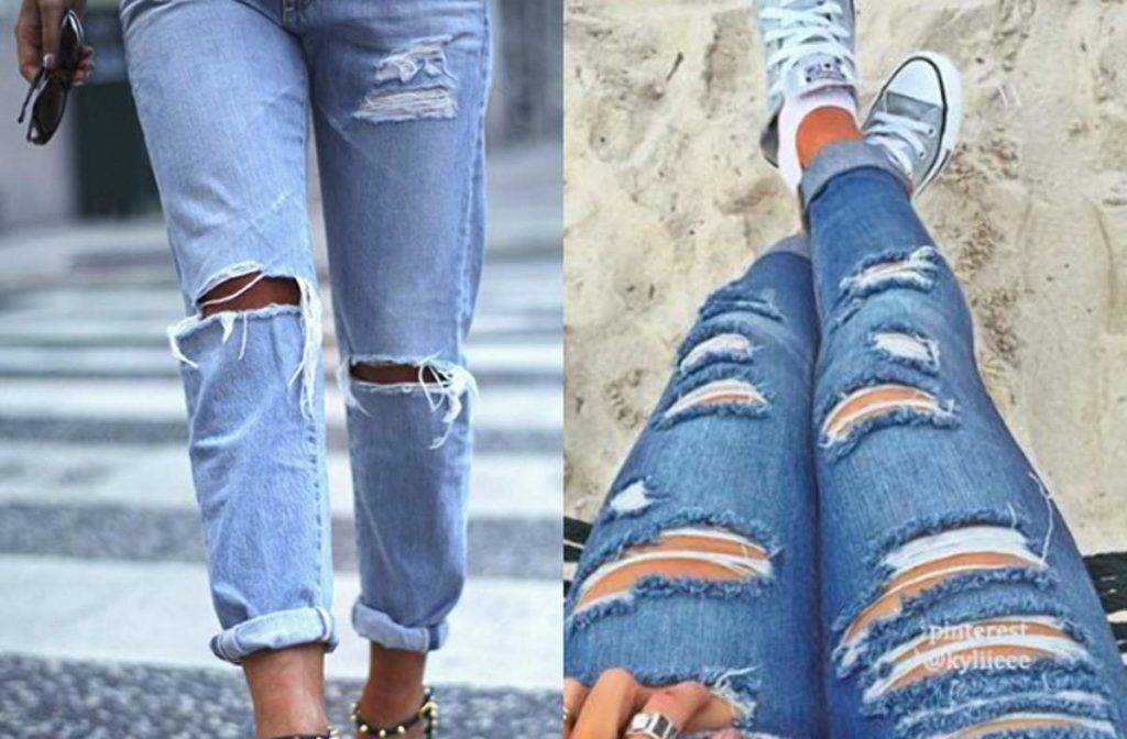 Прорези могут быть также продольными и горизонтальными, квадратными и круглыми. Модные прорези обладают эффектом потертости, без четких очертаний. Их обязательно должно быть несколько. Джинсы в стиле «бойфренд», «трубы», «скинни» лучше всего подходят для рваного эффекта.