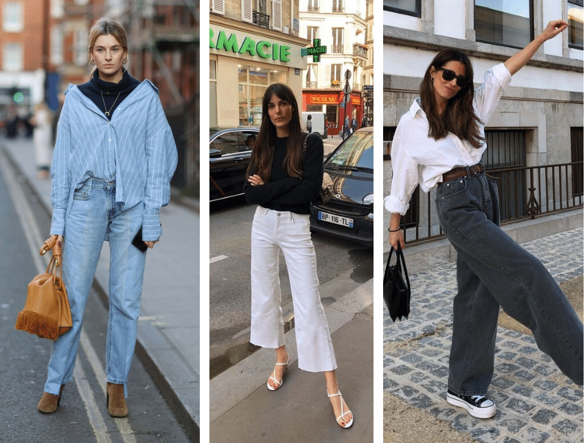 Этот классический вариант также можно носить с разными предметами гардероба. Гармонируют с голубыми джинсами клеш: