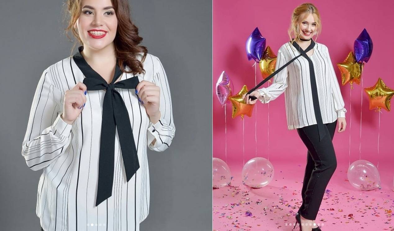А вот горизонтальные полоски требуют осторожности. Нет единых рекомендаций для их подбора, но мелкие полосы способны укрупнять и без того пышные формы