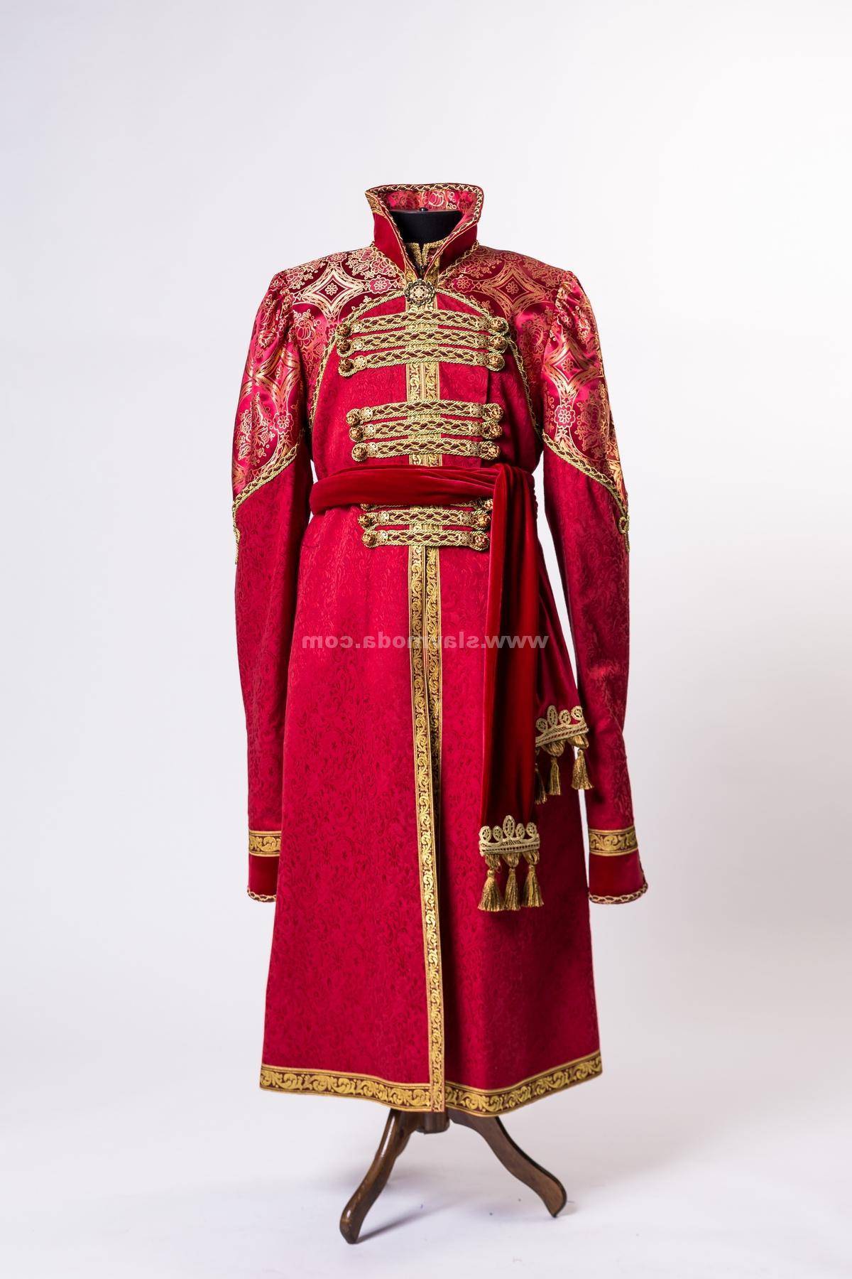 Стилизованный костюм со всеми составляющими образа покорил сердца публики. Рубаха в самобытном исполнении с ручной вышивкой, выполняется из натуральной ткани. Внешний вид нижней рубашки имеет оформление в виде нашивки на воротнике и пуговиц.