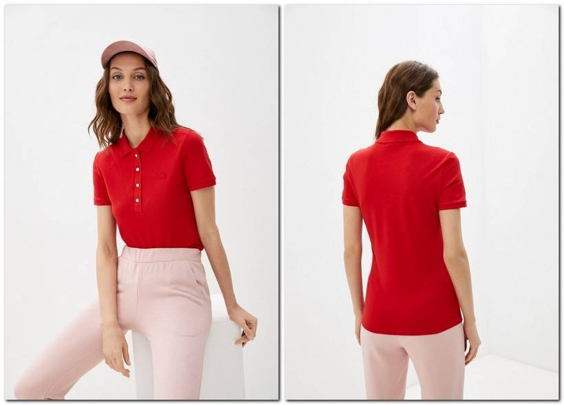 Красное женское поло — особая классика стиля. В сочетании с нежно-розовыми брюками сделает образ роковым. Красное поло подойдёт для свободолюбивых женщин с особым характером. С помощью такого образа они смогут показать окружающим свою независимость.