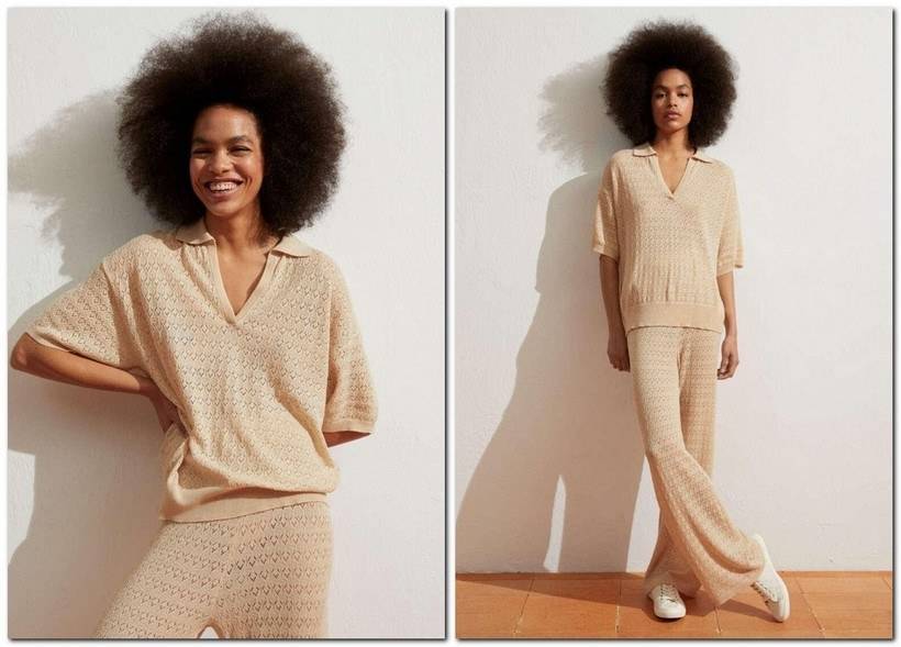 Натуральность и лёгкость — девиз женских образов нынешнего времени. Костюм, представленный на фото, подойдёт для тёплого времени года. Он лёгкий, дышащий, невесомый. В нем каждая женщина почувствует себя особенной, а рисунок на ткани сделает образ более изысканным. Как раз такое сочетание подойдёт для похода в кафе или на работу.