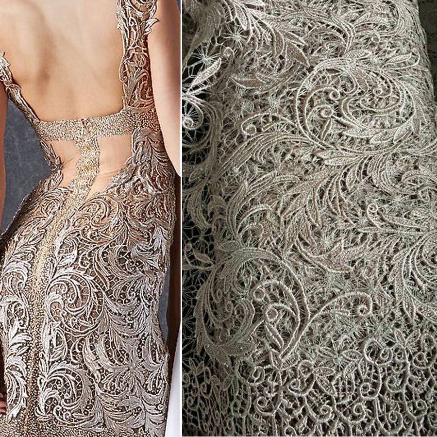 Эта тонкая ажурная ткань для тактильного восприятия немного жесткая, но платья из нее шьются с подкладкой, которая обычно выполняется из атласа или шелка. Визуально такие наряды смотрятся очень нежно и женственно.