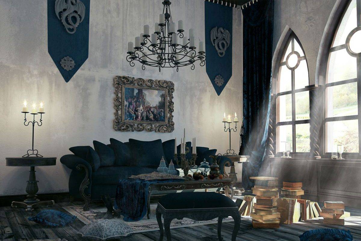Стиль готика в интерьере характеризуется большим количеством вытянутых элементов, что придаёт помещению впечатление строгой устремлённости вверх.