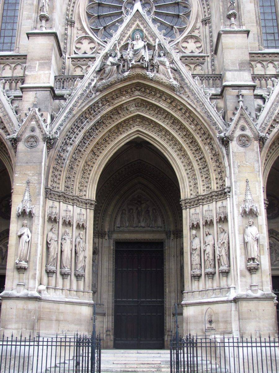 - Разнообразный декор готического фасада: архивольт (обрамления арочных пролетов), вимперг (остроконечный щипец над оконным проемом или порталом), «большая роза» (центральное окно собора), фасад, украшенные резьбой.