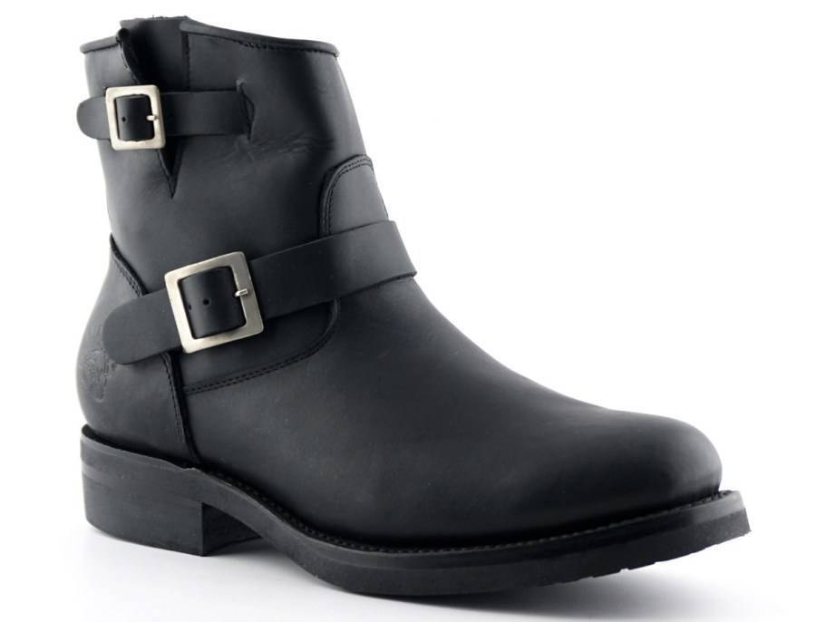 - Байкерская модель Biker остается востребованной после выхода фильма «Терминатор». Зрителей привлекла грубая обувь с увесистыми пряжками главного героя, разъезжающего на мотоцикле. Обычно носки изделий выпускают круглой или заостренной формы, а длина голенищ достигает щиколоток.