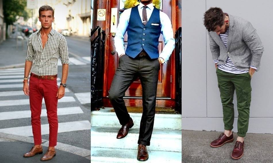 Дерби можно назвать противоположностью оксфордов. Обувь является универсальной. Модели в черном и коричневом цвете подойдут к строгим деловым костюмам. Дерби из мягкой кожи, с цветными вставками, в ярком цвете прекрасно дополнят джинсы или хлопковые чиносы. Очень популярной является обувь из рыжей кожи. Такие дерби добавляют образу яркости, оригинальности. Их удел – это неформальный стиль одежды: слаксы, джинсы.