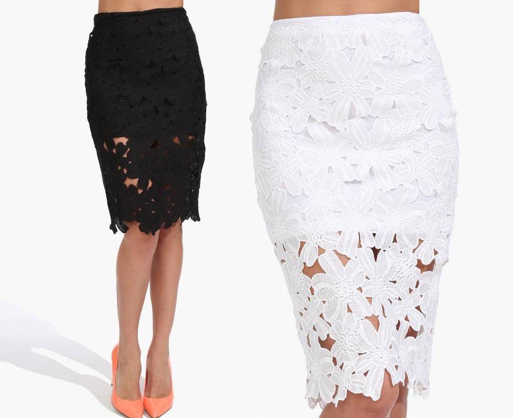 Сегодня так же у модниц популярны черные и белые прямые юбки из кружева. Длина кружевных юбок прямого кроя может быть любая: от мини до пола. Такие изделия привлекают девушек своей уникальностью. В таком наряде можно легко пойти гулять в подружками или встречать гостей.