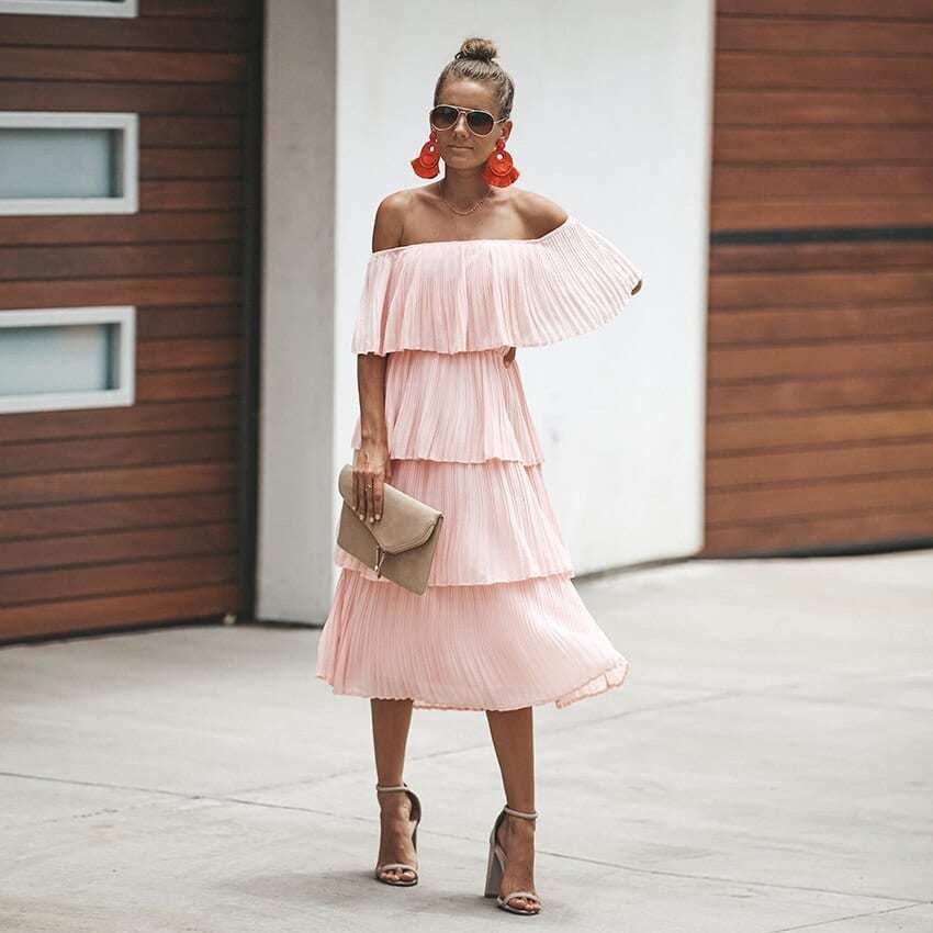 Невероятно соблазнительно смотрятся фасоны платьев и блуз, которые отрывают линию плеч и ключиц. Но при этом длина у наряда должна быть сдержанной – скромная миди подойдет идеально. Чувственный разрез на длине макси также действует обезоруживающе. Фасон с открытой спиной можно взять на вооружение при составлении образа на особый случай. Мужчины признаются, что такая деталь подчеркивает хрупкость и изящность женской фигуры.
