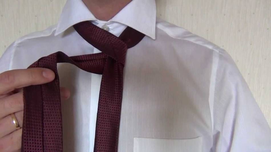 Этот вариант завязывания отличается простотой и помогает сделать галстук немного укороченным. К тому же он позволяет получить аккуратный узел небольших размеров, который будет сочетаться с любой рубашкой или костюмом.